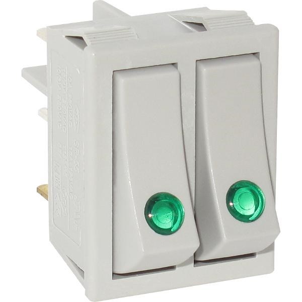 Выключатель двухклавишный зеленая линза, серый корпус